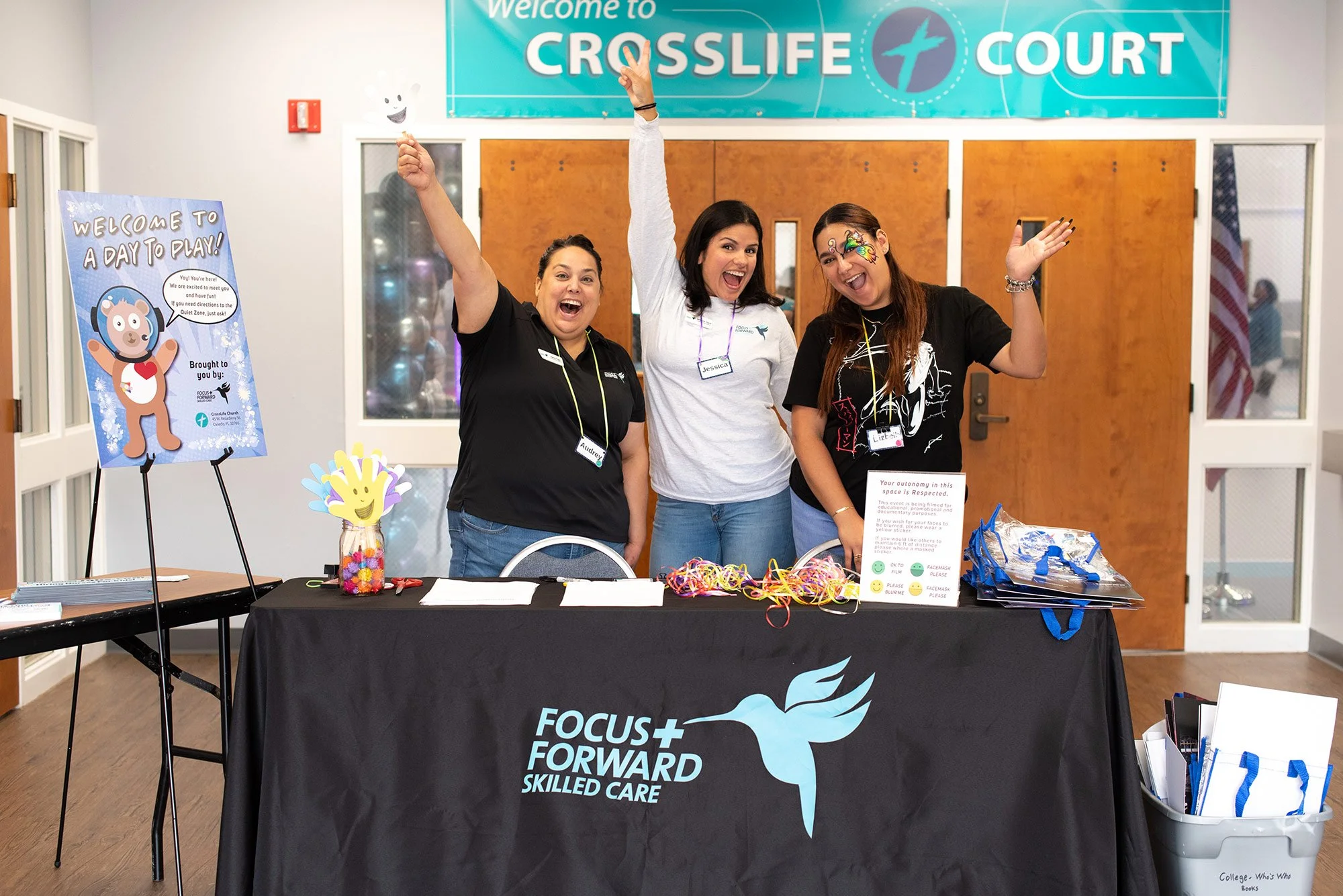 If you’ve got 2,500-3,000 square feet and one private room large enough for a table and a Hoyer lift, we’d love to bring A Day to Play to your location. Larger event spaces can be divided using curtain and/or balloon walls, and smaller event spaces with multiple rooms are possible too. There will need to be parking for 30 cars, including handicap spaces.